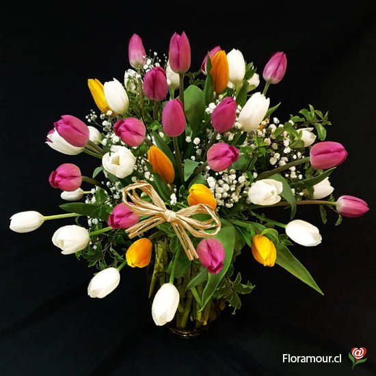 • Acadian – Florero deluxe con 35 tulipanes multicolor