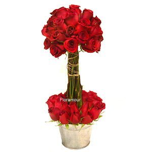 • Topiario de flores con osito de peluche