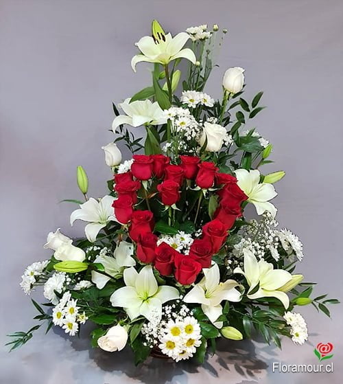 • Arreglo floral con corazón central de rosas