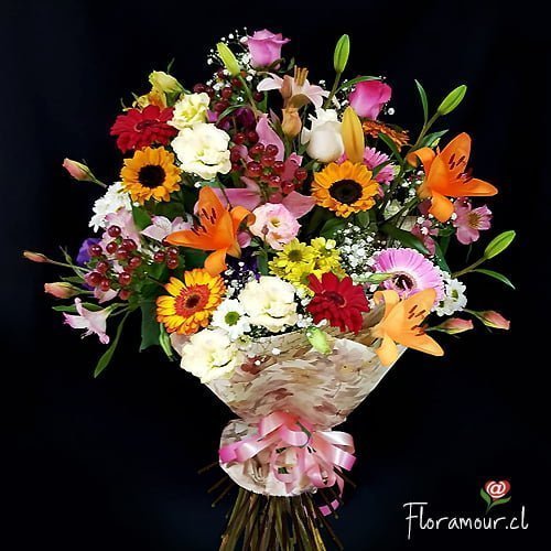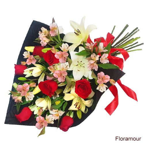 • Diana – Ramo de rosas, liliums y alstroemerias