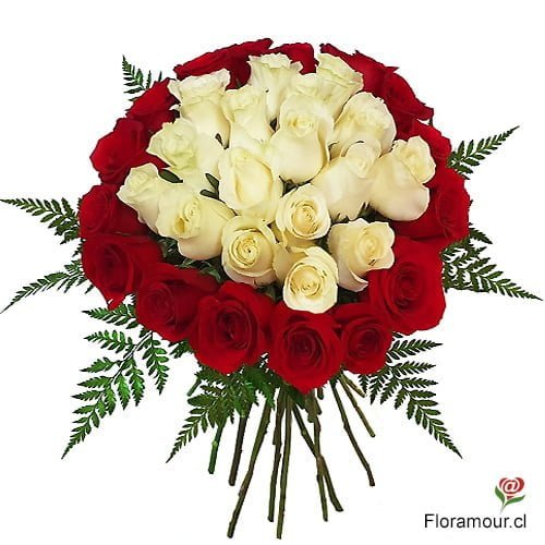 • Ipanema – Exclusivo ramo formado de 30 rosas blancas y rojas