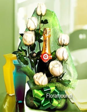 • Arreglo rosas con botella de espumante.