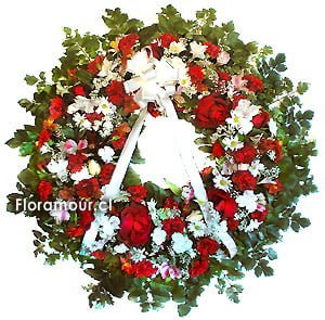 • Corona de flores mixtas en rojo y blanco