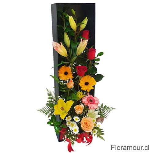 Disfruta la sofisticación de nuestra exclusiva Caja Negra con cinta impresa. Esta cautivadora caja presenta 12 rosas rosas ecuatorianas, meticulosamente seleccionadas. La caja está atada con una cinta decorativa en la que podrá expresar tus sentimientos con mensajes románticos o cualquier otro saludo especial que desees compartir. Con la comodidad de nuestro servicio de despacho a domicilio en Las Condes y toda la Región Metropolitana de Santiago, hacer sentir especial a esa persona especial nunca ha sido tan fácil.